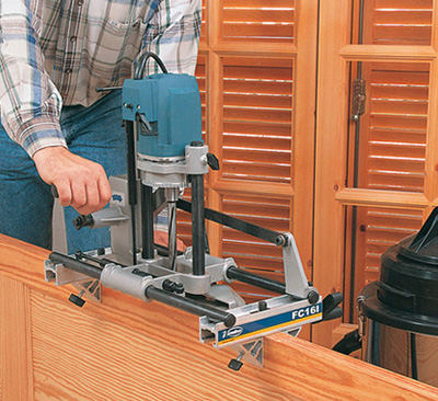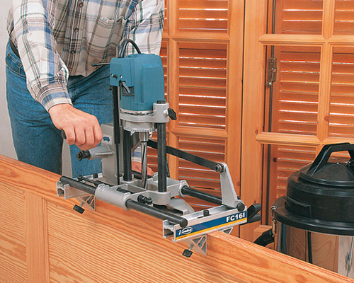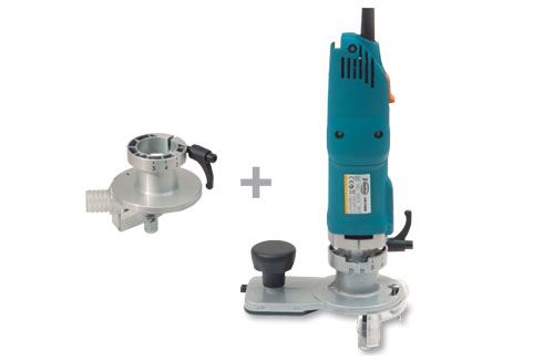 This set includes the FR156N edge trimmer and the CA56U trimming head which allows to trimm al the edges of the panel continuosly. The CA56U trimming head has a large support surface and an auxiliary knob. Idela for a trimming work on the panel edge.