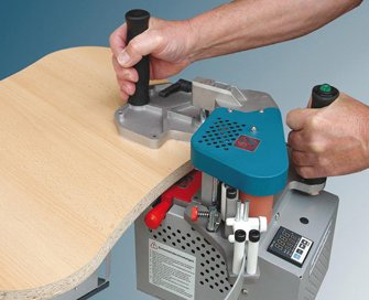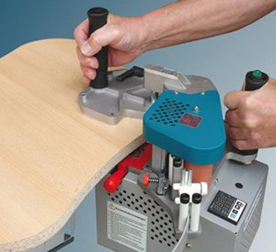 Enables banding of circular or shaped pieces. Its special design with adjustable clamps ensures high precision work with great stability. A practical edge trimming system included. The possibility of surface glueing or with excess on either of the two sides. Set up time: less than one minute.