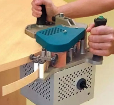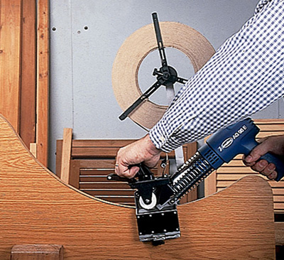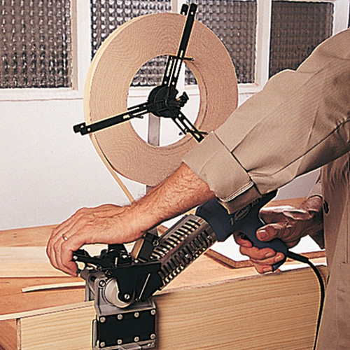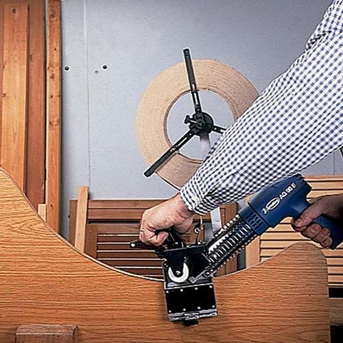 For banding PVC, ABS, melamine, laminate and veneer tapes, previously cut to the desired length, on shaped, curved or straight panels. Very practical for small or medium size manufacturing series in the workshop or the worksite and very easy to handleEasy and fast setting up of the tape height and panel thickness.Automatic feed with manual control.