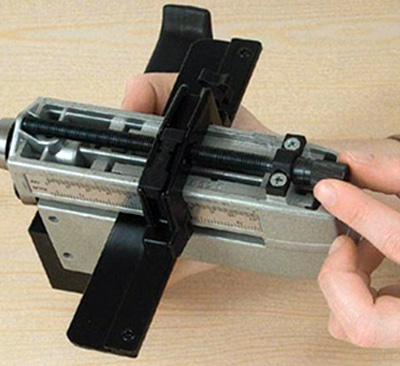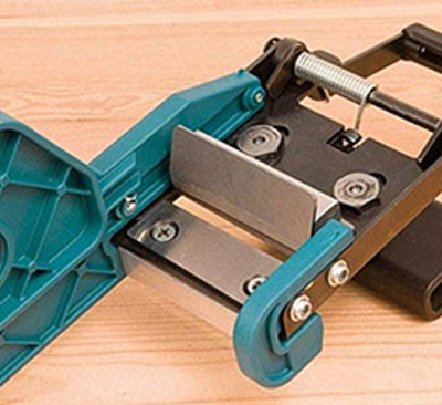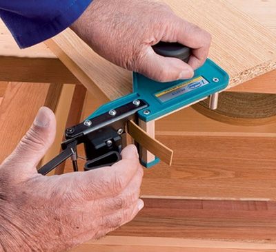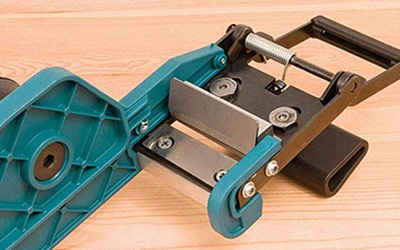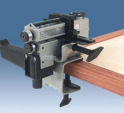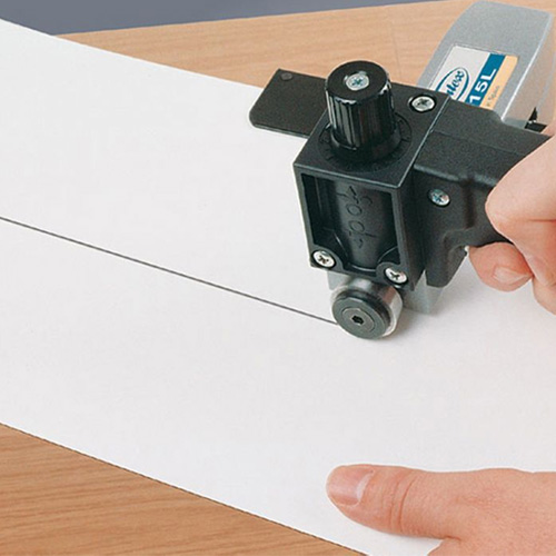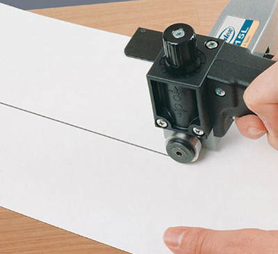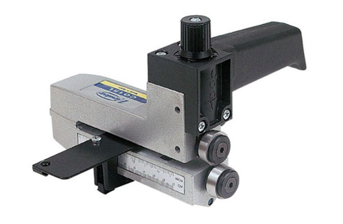 Cuts plastics, laminates and veneer. Cutting depth can be adjusted with micrometric measure and it has a guide on a millimeter scale with micrometric measure for easy adjustment of strip width.