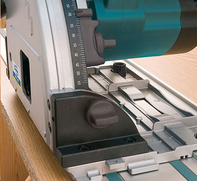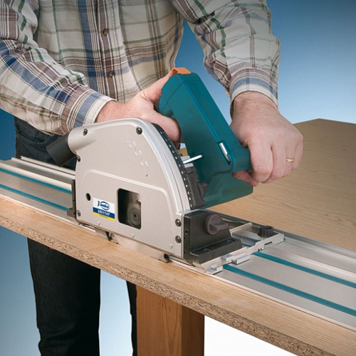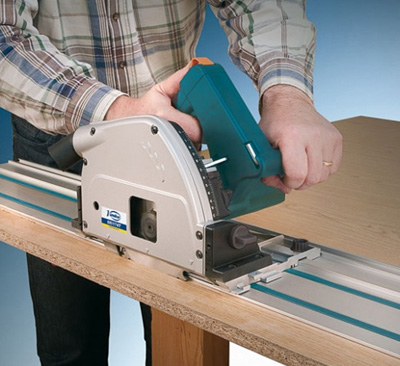 The saw glides directly on the guide without any additional accessory.
