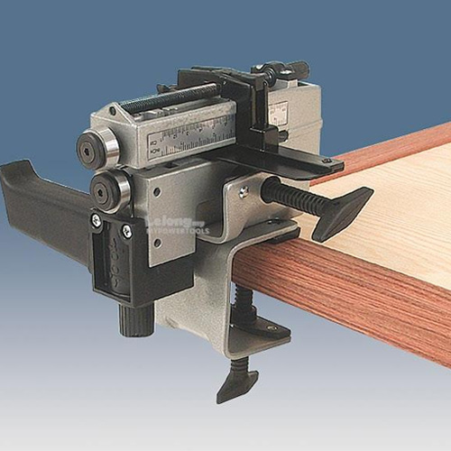 Cuts plastics, laminates and veneer. Cutting depth can be adjusted with micrometric measure and it has a guide on a millimeter scale with micrometric measure for easy adjustment of strip width.