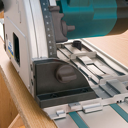 The saw glides directly on the guide without any additional accessory.